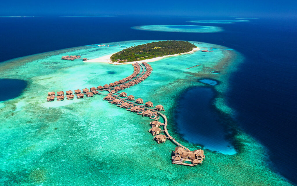 Cada resort ocupa sua própria ilha, criando uma sensação única de privacidade e conexão.